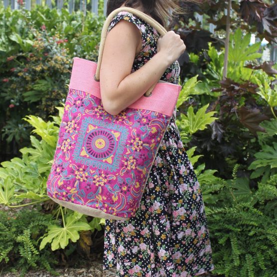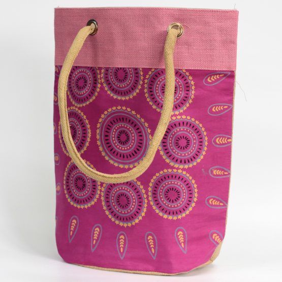 Barrel Shopping Bag 38×37 Pink Alpana assorted patterns.