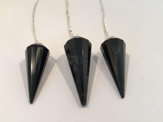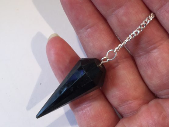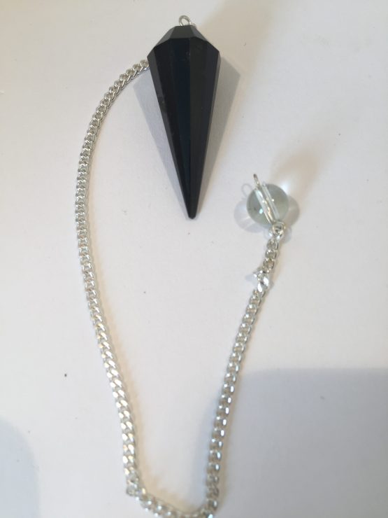 Black Obsidian Crystal Faceted Pendulum with a beaded stopper on the end of the chain