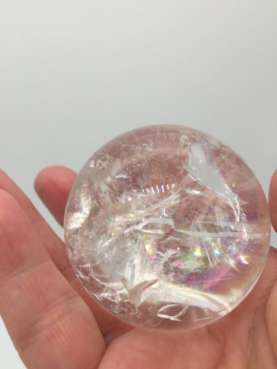 This Clear Quartz Crystal Sphere has beautiful inclusions and shimmers with rainbows when rotated in light. We only have 1 in stock of this size as they are hard to source this big now due to lack of larger pieces of crystal coming up from the mines.