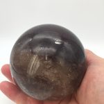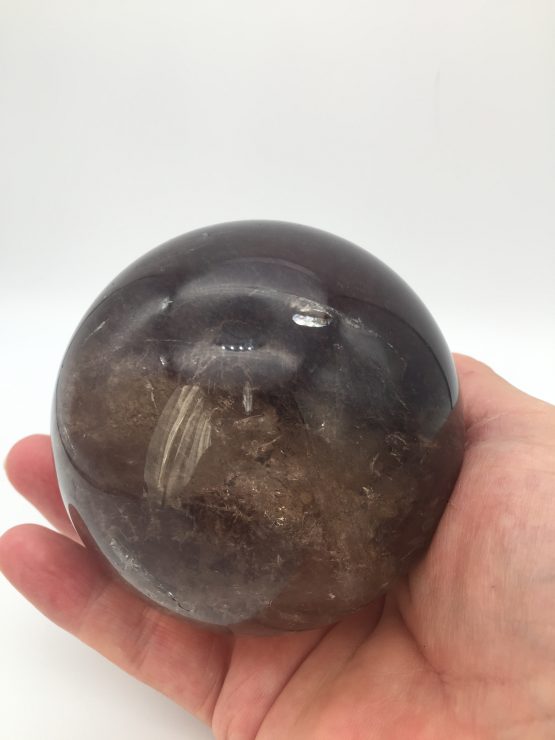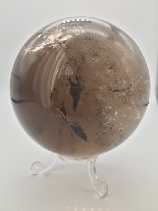 This Smoky Quartz Crystal Sphere has beautiful inclusions and shimmers with rainbows when rotated in light. We only have 1 in stock of this size as they are hard to source this big now due to lack of larger pieces of crystal coming up from the mines.
